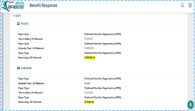 In order to find the correct out-of-pocket costs for both families and individuals (met and remaining) - (IN-Network and Out-of-Network), the front office needs to check the below screen.